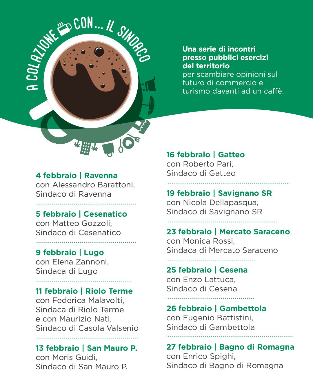 Una serie di appuntamenti che si terranno presso pubblici esercizi del territorio fra Confesercenti ed i primi cittadini romagnoli