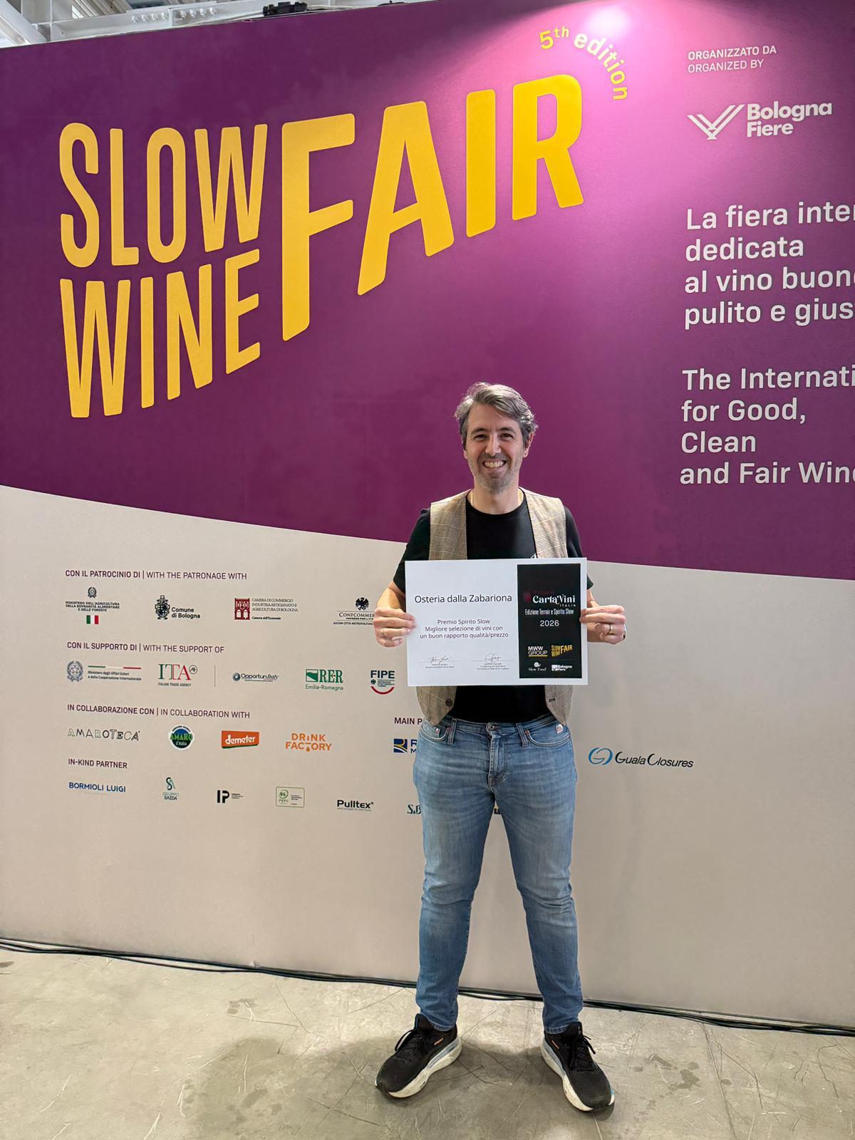 La Slow Wine Fair, organizzata da Slow Food, rappresenta uno degli appuntamenti più importanti a livello nazionale e internazionale per il vino “buono, pulito e giusto”. Il riconoscimento conferma il percorso intrapreso dall’Osteria Dalla Zabariona, da anni presente nelle principali guide di settore.